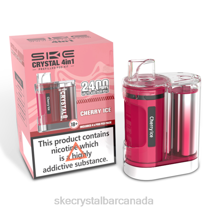 The Cherry Ice SKE Crystal 2400 4-in-1 Pod Kit is an exciting TPD-compliant prefilled pod kit ideal for MTL (Mouth To Lung) vaping. With a rechargeable 950mAh internal battery and delivering up to 2400 puffs, this kit is perfect for all-day vaping. The kit comes with four pods and each pod provides up to 600 puffs and is prefilled with 2ml of Nicotine Salts containing 20mg of nicotine strength. With a choice of six kits with the same flavoured pods or four kits with different flavoured pods, there’s something for everyone.
